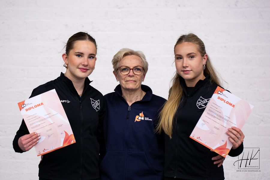 Vlak voor de feestdagen ontvingen Roos ter Brugge en Rosalie Wolfs hun diploma Assistent Trainer Coach niveau 2 van de Koninklijke Nederlandse Gymnastiek Unie.